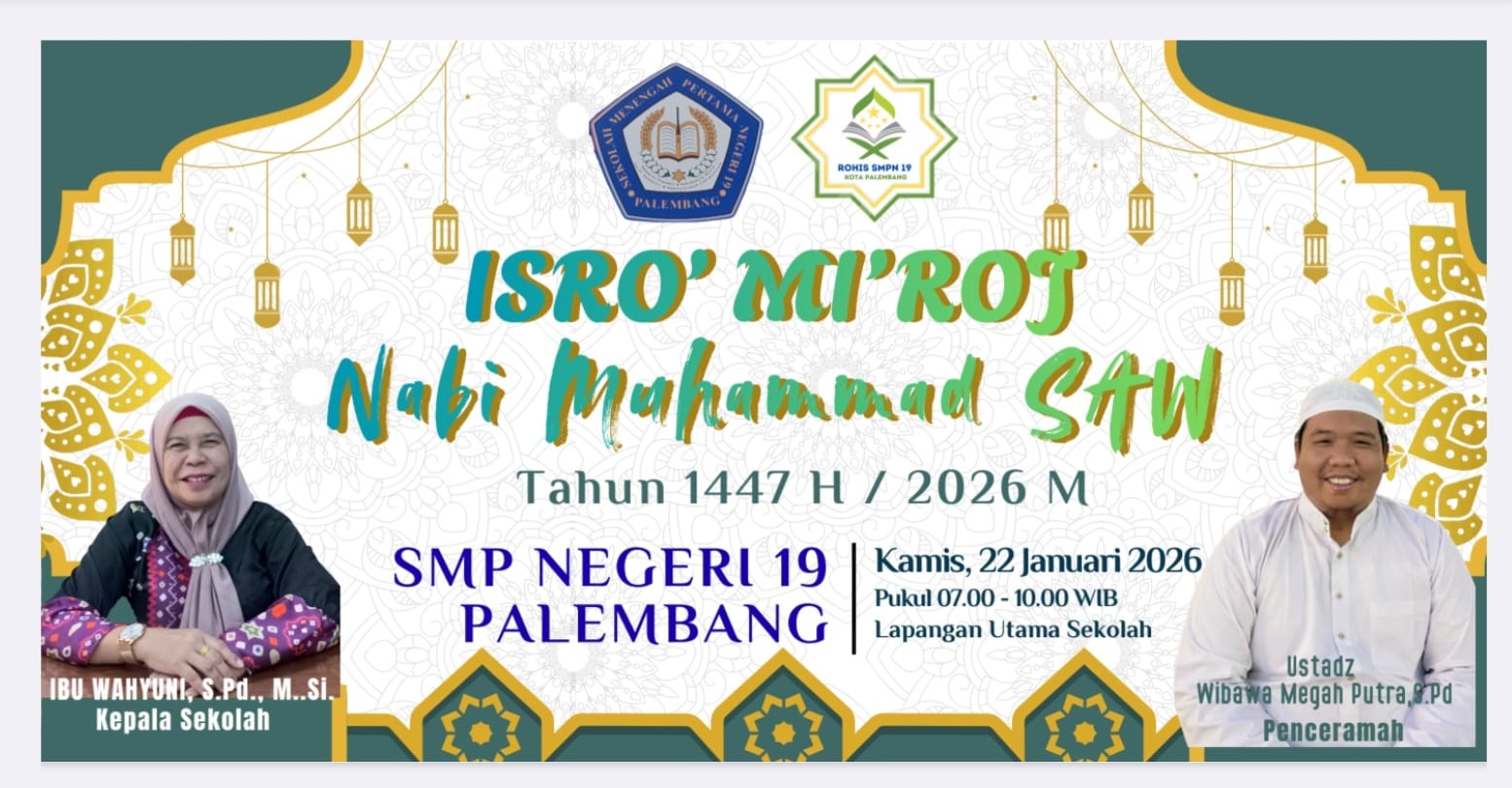 Keluarga besar SMP Negeri 19 Palembang dengan penuh rasa syukur memperingati Maulid Nabi Muhammad SAW yang diselenggarakan pada: ๐ Rabu, 10 September 2025 ๐ Aula SMP Negeri 19 Palembang &n...