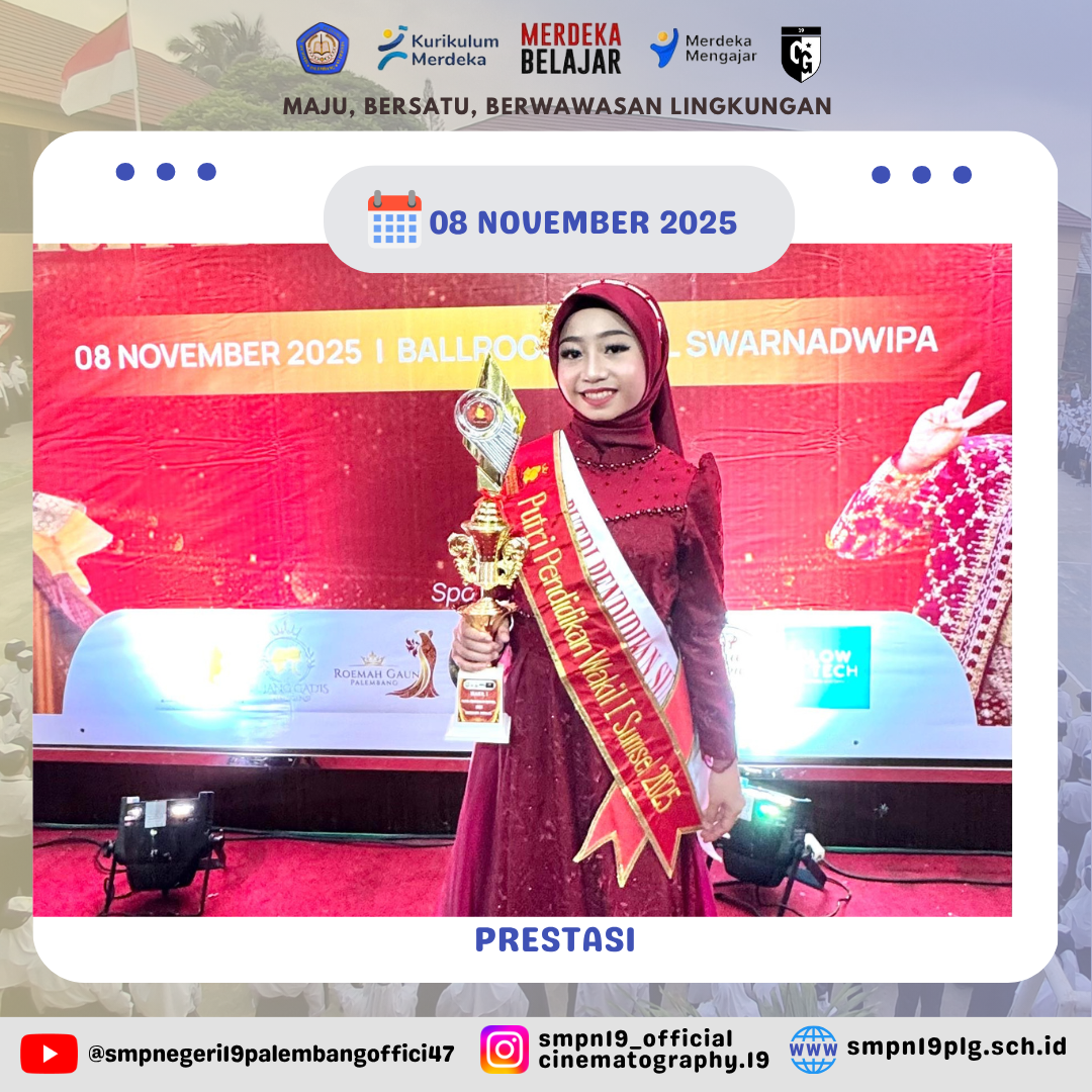 ![]() | PRESTASI Alhamdulillah ananda Kavindra Zisel Adelia kelas 7.10 terpilih sebagai Wakil 1 Putri Pendidikan Sumsel 2025 |
