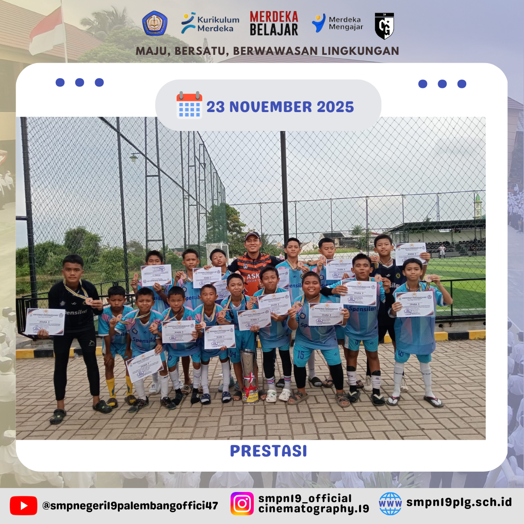 ![]() | PRESTASI Selamat Tim Futsal Putra dan Pembina Berhasil keluar sebagai Juara 3 dalam turnamen Minisoccer Antar Pelajar SMP/MTs Kelas 7 se-kota Palembang yg diselenggarakan di Sentra Minisoccer Graha Person Pakjo pada 23 November 2025 |