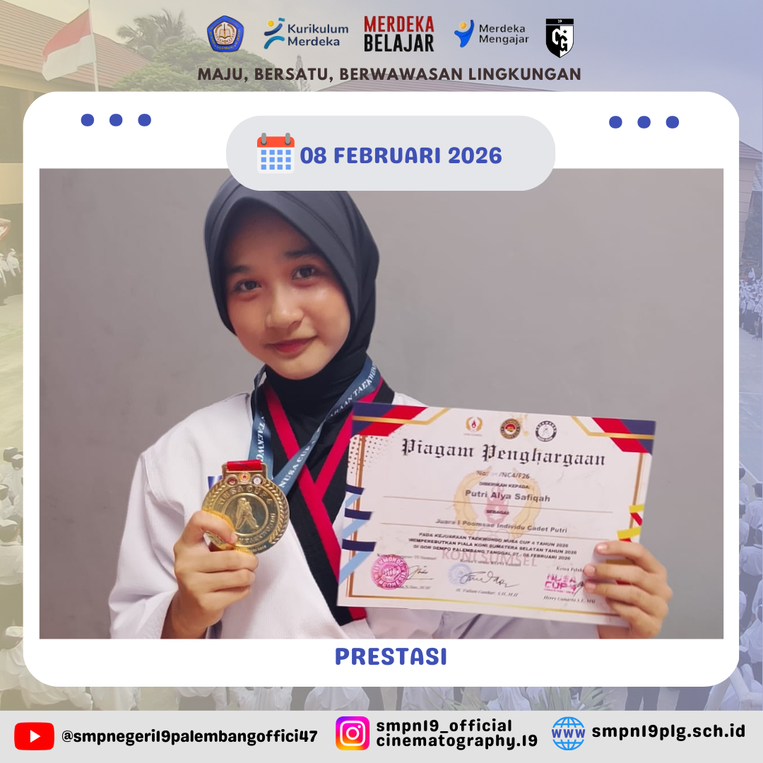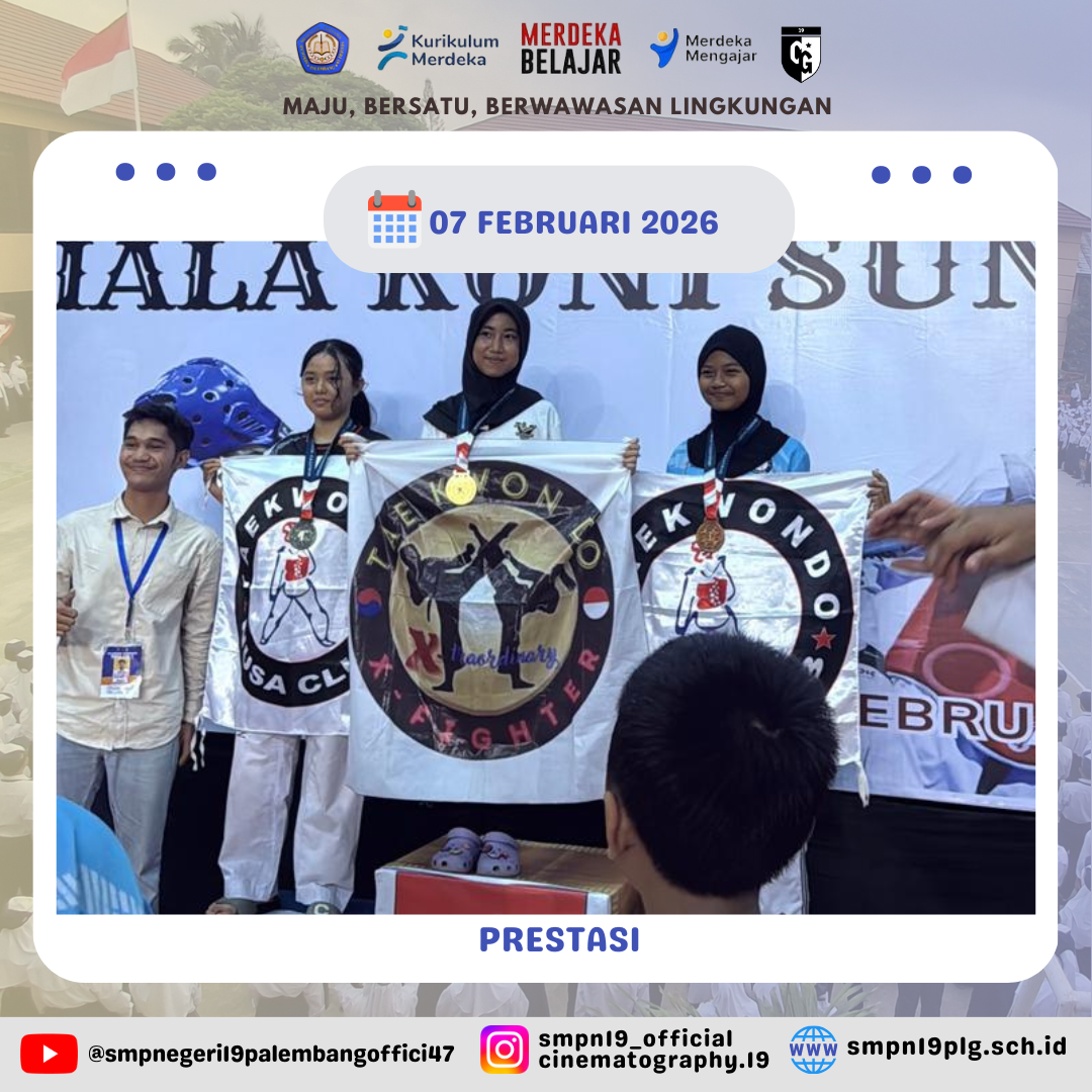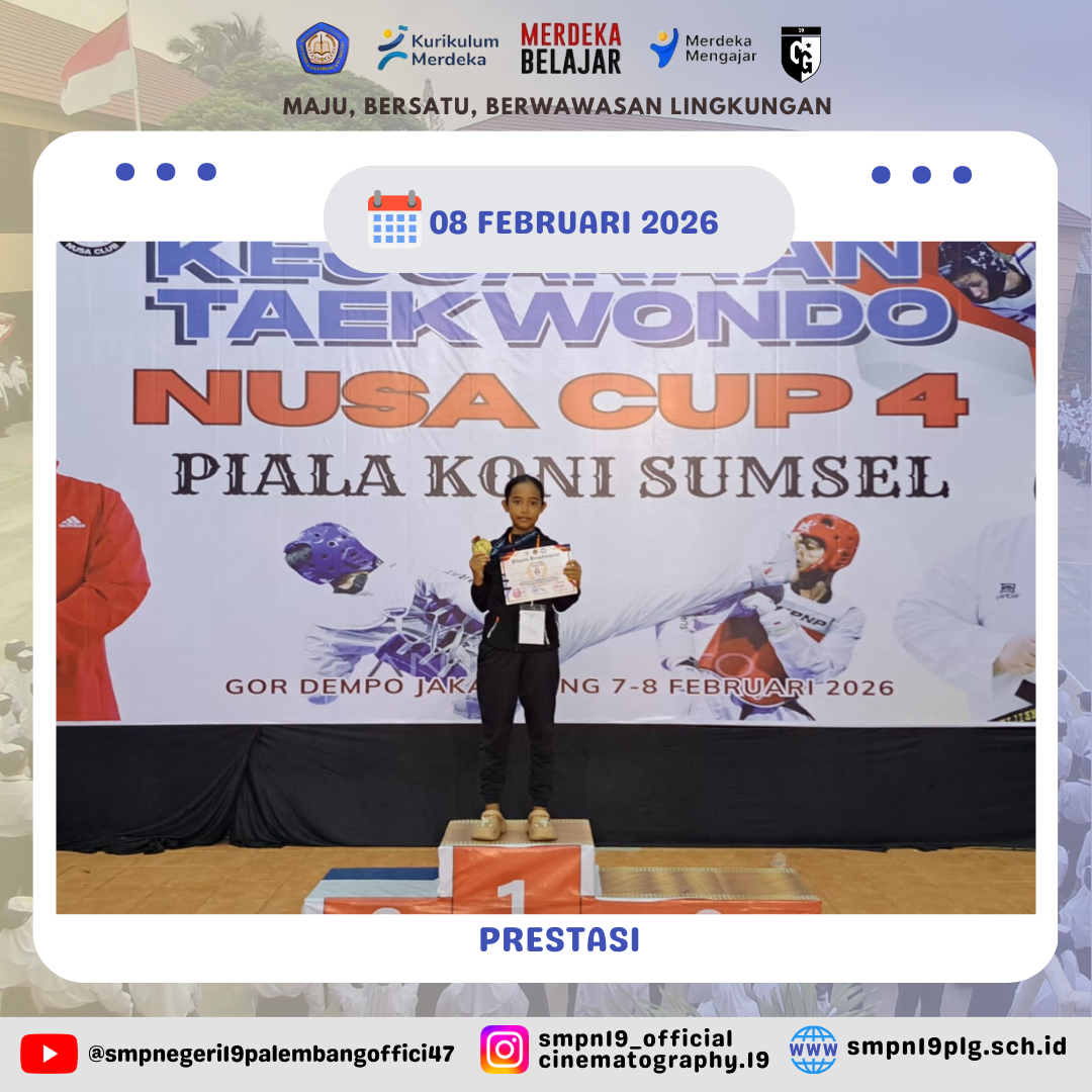 ![]() | Prestasi Selamat kepada Nyayu Khalifah Khairunnisa kelas 8.8 berhasil meraih Juara 1 Kategori Kyorugi Prestasi Kejuaraan Taekwondo Nusa Cup 4 2026 Piala Koni Sumsel |