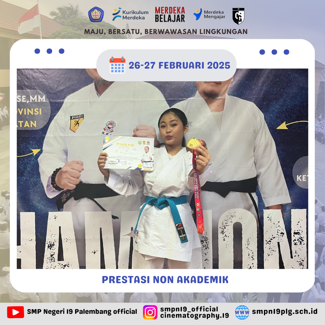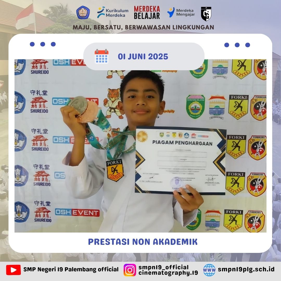 ![]() | PRESTASI NON AKADEMIK Alhamdulillah selamat kepada Uziel Van Askarillah kelas 7.4 Meraih Juara 2 Lomba Karate Festival DPRD Sumsel 2025 |