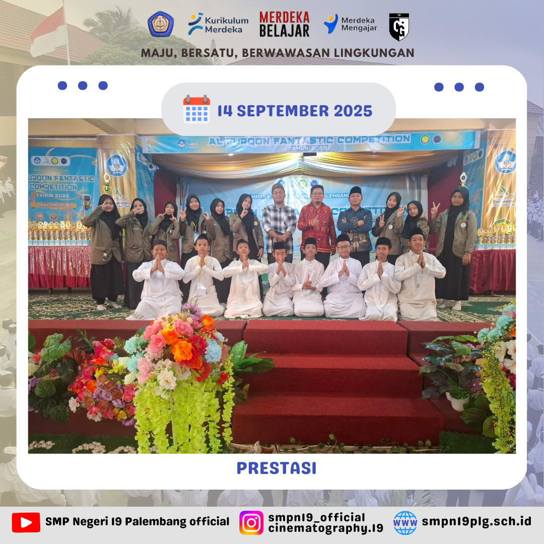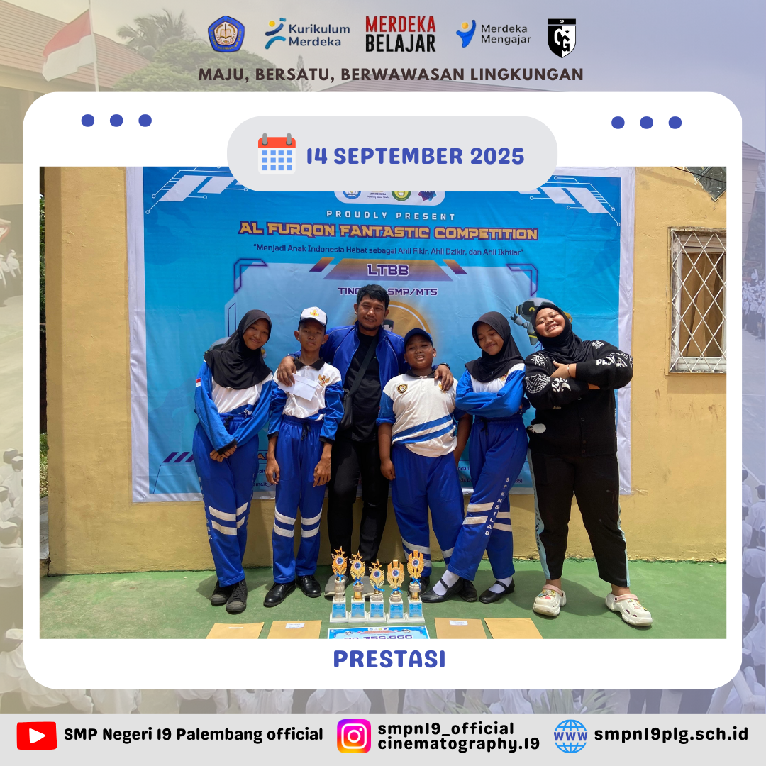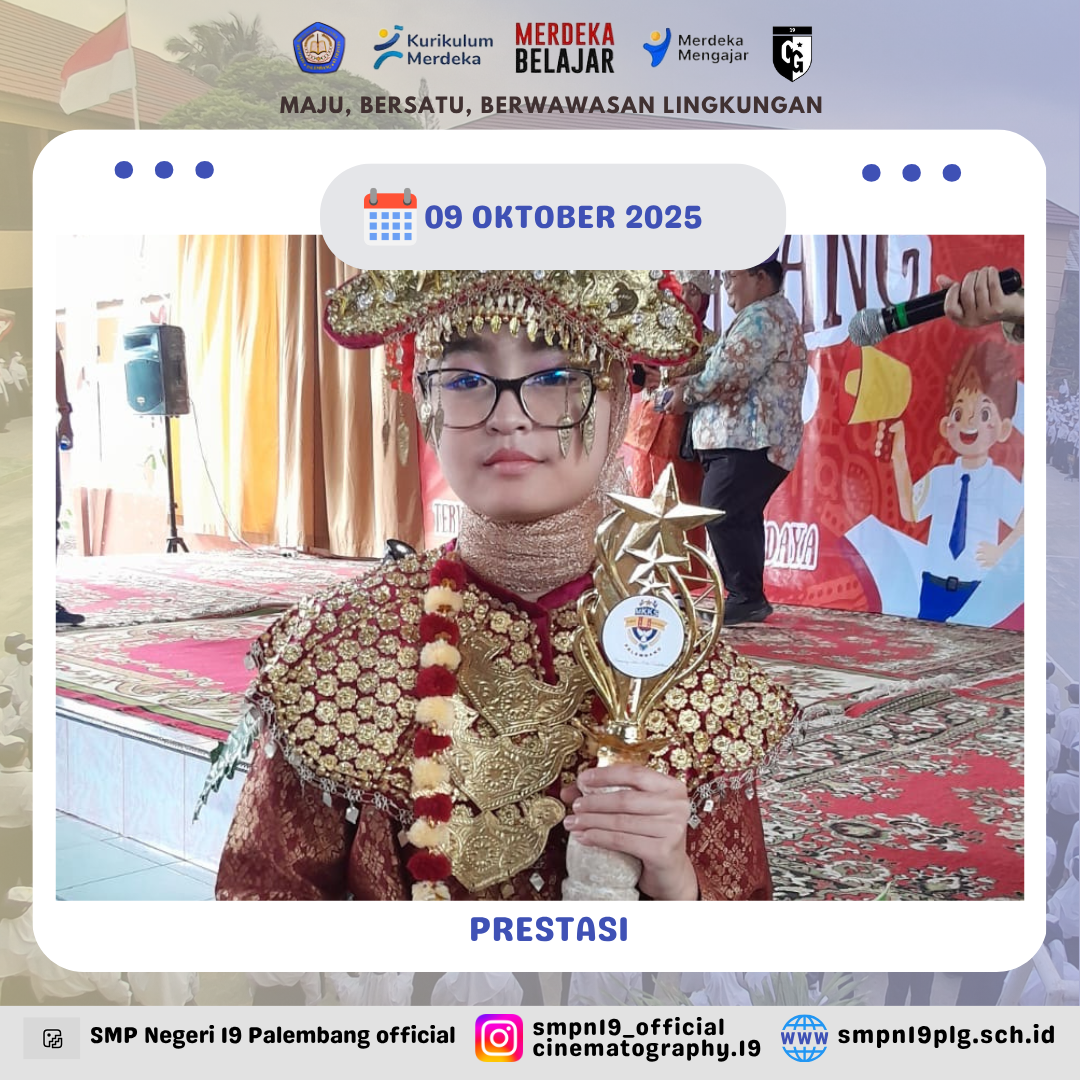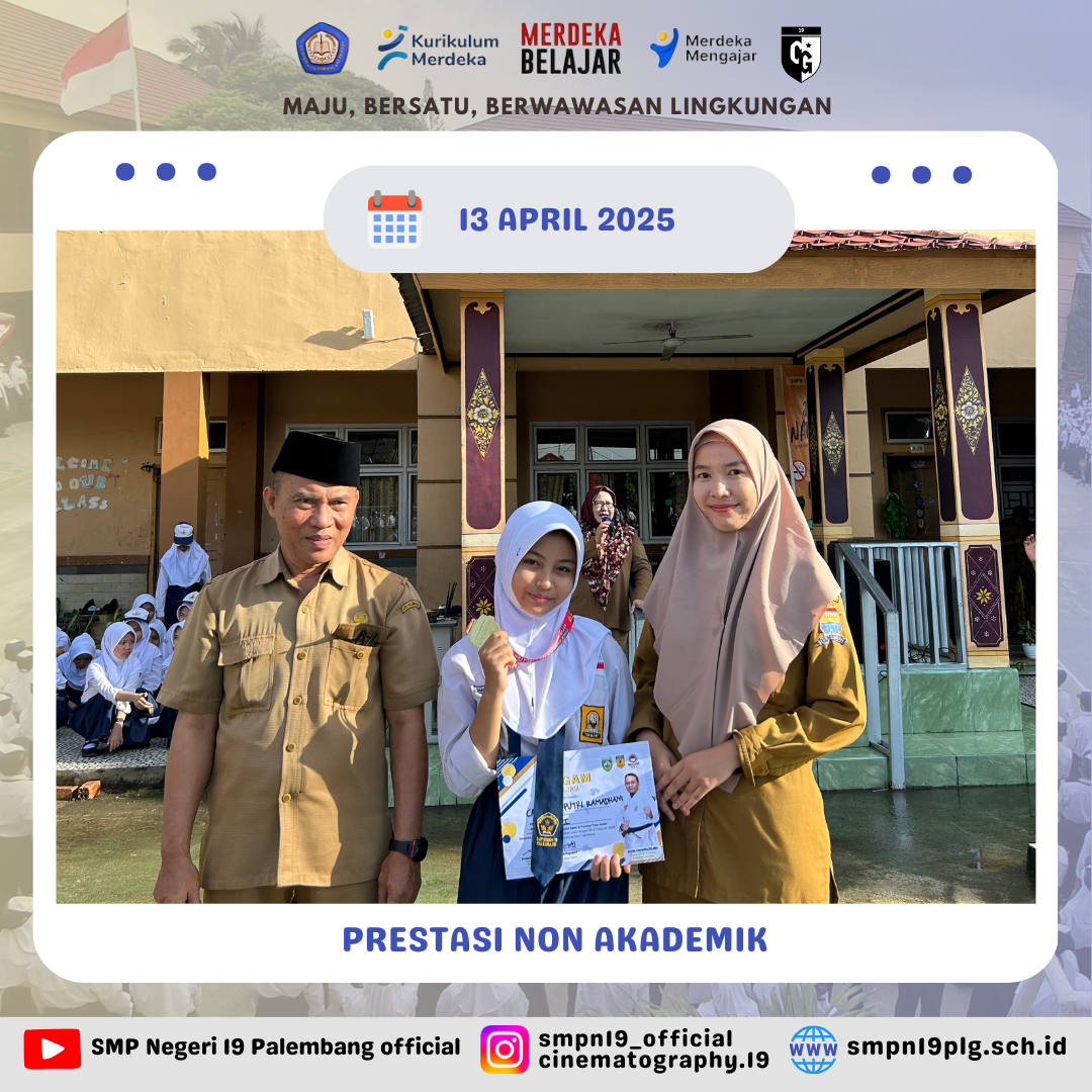 ![]() | PRESTASI Selamat kepada Nur farah kelas 7.4 dan pembina telah berhasil meraih juara 2 lomba baca puisi FTBI kota Palembang |