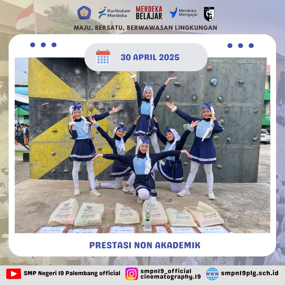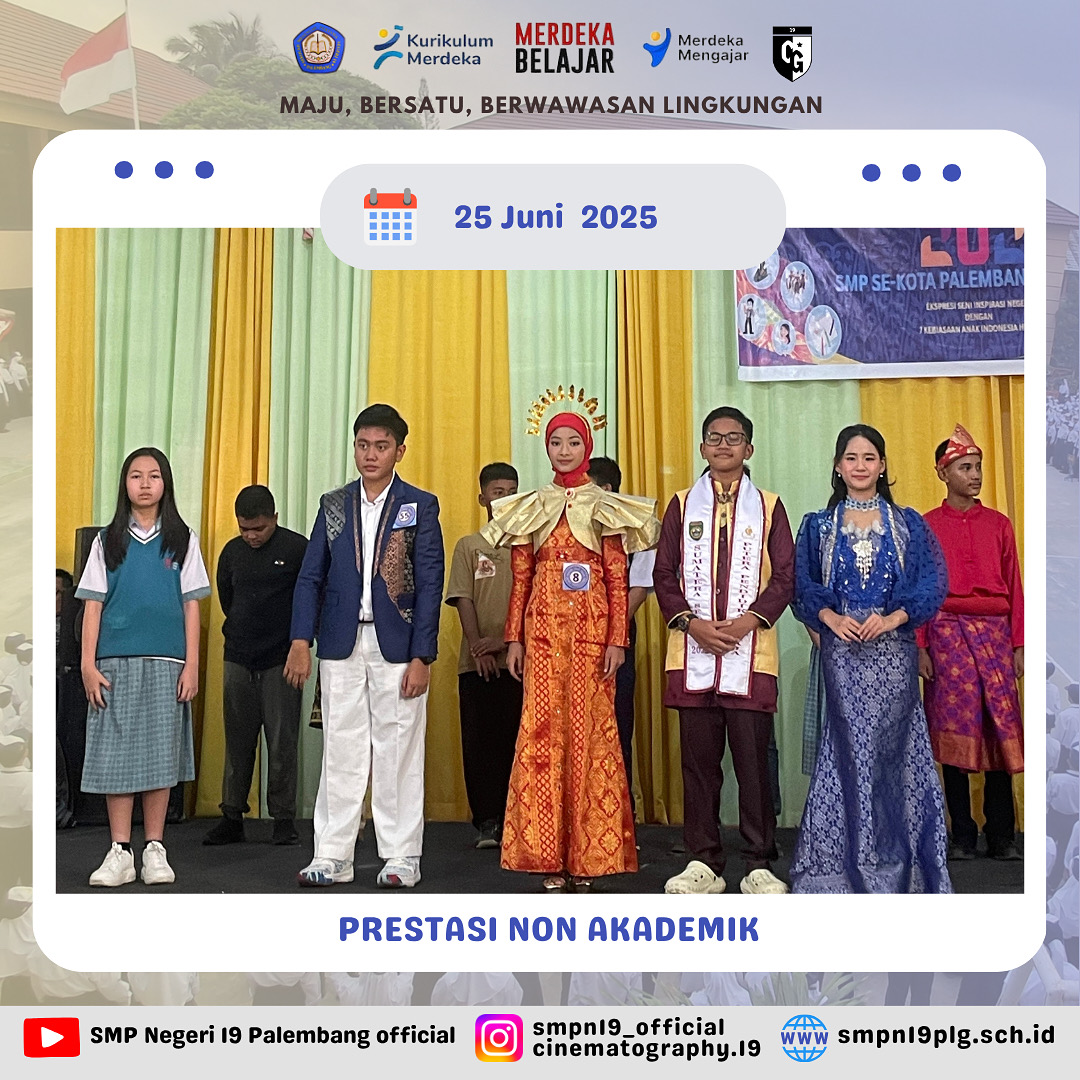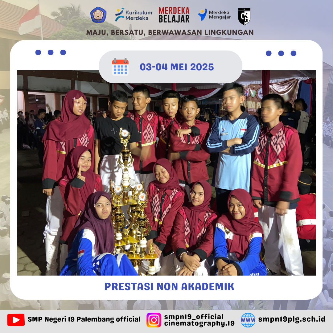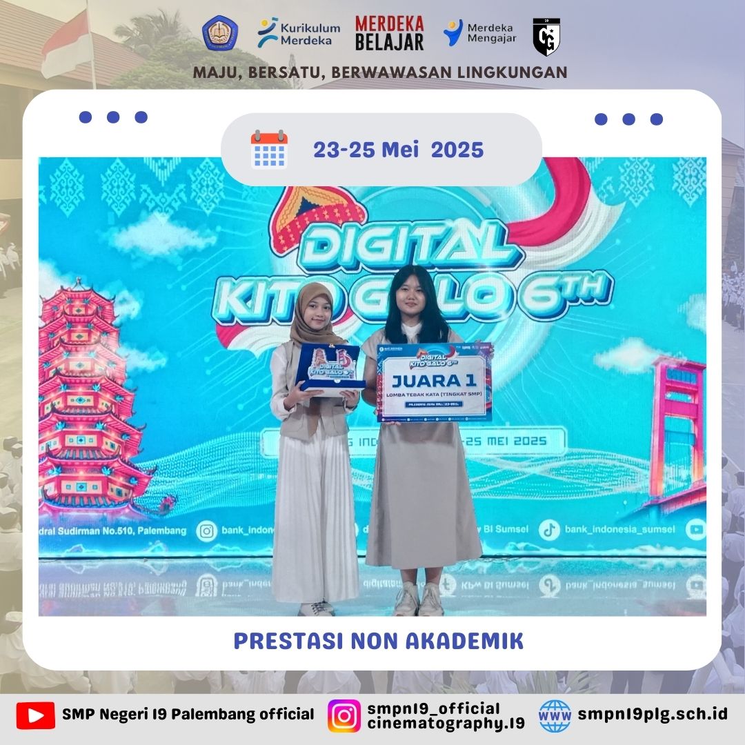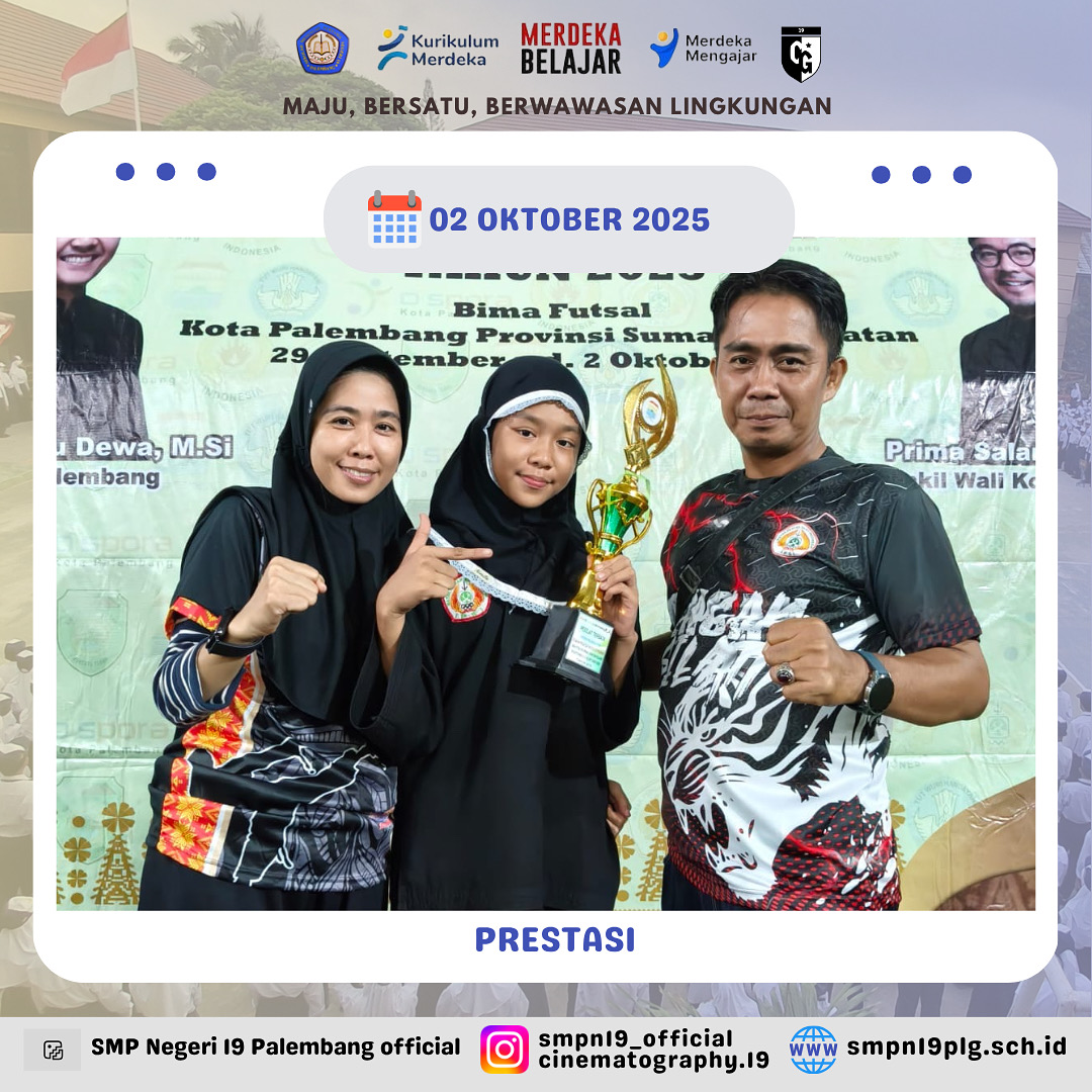 ![]() | PRESTASI Selamat kepada Nur farah kelas 7.4 dan pembina telah berhasil meraih juara 2 lomba baca puisi FTBI kota Palembang |