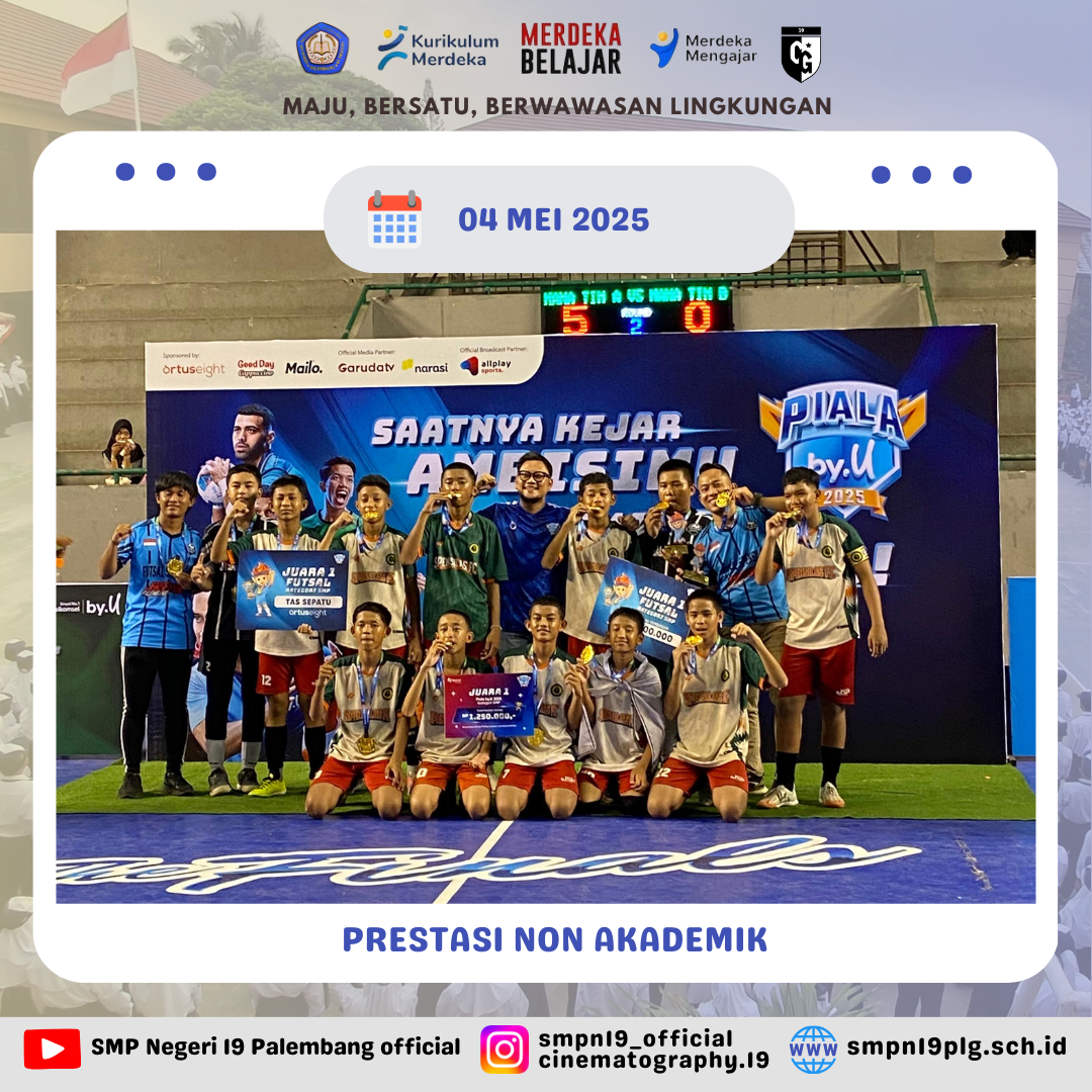 ![]() | PRESTASI NON AKADEMIK Selamat kepada tim futsal Spensilas telah meraih: Juara 1 kategori Futsal tingkat SMP KEJUARAAN FUTSAL *PIALA BY U* “SAATNYA KEJAR AMBISIMU” GOR DEMPO JAKABARING 2-4 Mei 2025 *Penghargaan individu:* Best coach: M. Ardiansyah, M.Pd Best goal keeper: Dendi Aldiansyah |