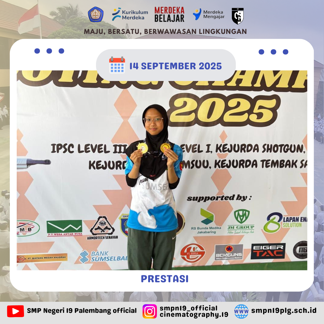 ![]() | PRESTASI Alhamdulillah selamat kepada Isyana Larasati Kuspriyadi kelas 9.1 meraih Double Winner, Juara 1 perorangan air pistol youth dan tim Dalam Sriwijaya Shooting Championship 2025 |