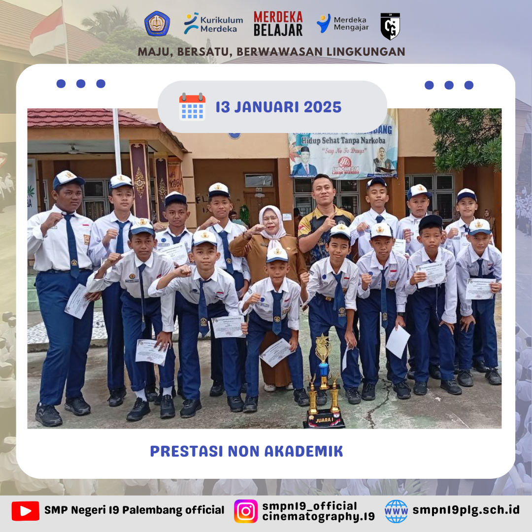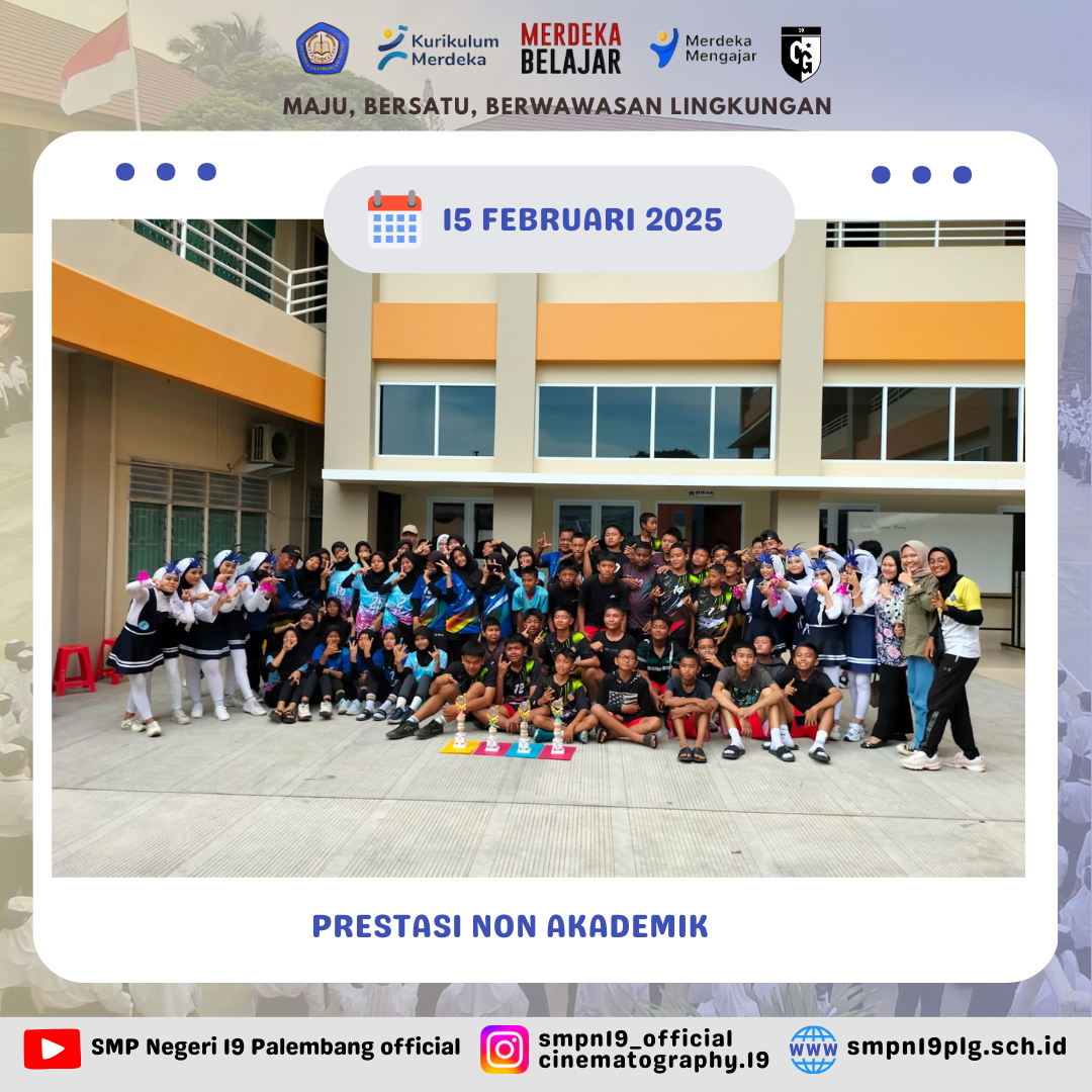 ![]() | PRESTASI NON AKADEMIK Alhamdulillah Selamat kepada siswa/i dan Guru Pembina Ekskul SMP N 19 Palembang dalam kegiatan *Clash Of Champions* Di SMA Xaverius 4 di jl Urip Sumoharjo: 1. Juara 1 Putra Voli bal 2. Juara Harapan 1 Putri Voli abal 3. Juara 1 Senam Kreasi 4. Juara 2 Putra Basket Bal |