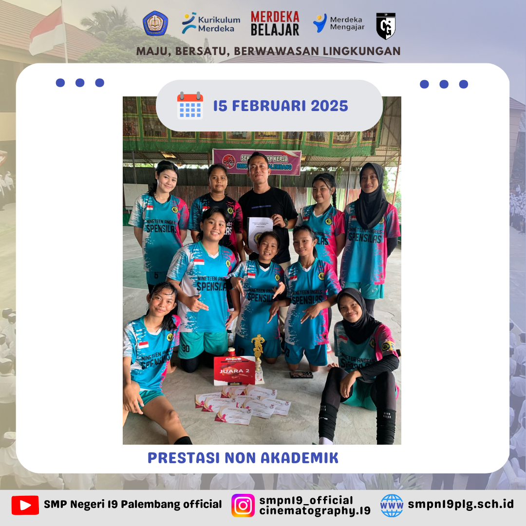 ![]() | Prestasi Non Akademik Runner Up (Juara 2) Turnamen Futsal Putri antar SMP zona sumsel di Tegal Binangun tgl 15 Februari 2025 |