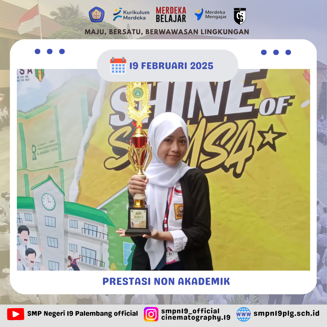 ![]() | PRESTASI NON AKADEMIK Selamat kepada Khalisa Leora Aqila kelas 8.11 meraih Juara 1 Sempoa Graduate 2 SE Sumatera Selatan PS Mall 23 Februari 2025 |