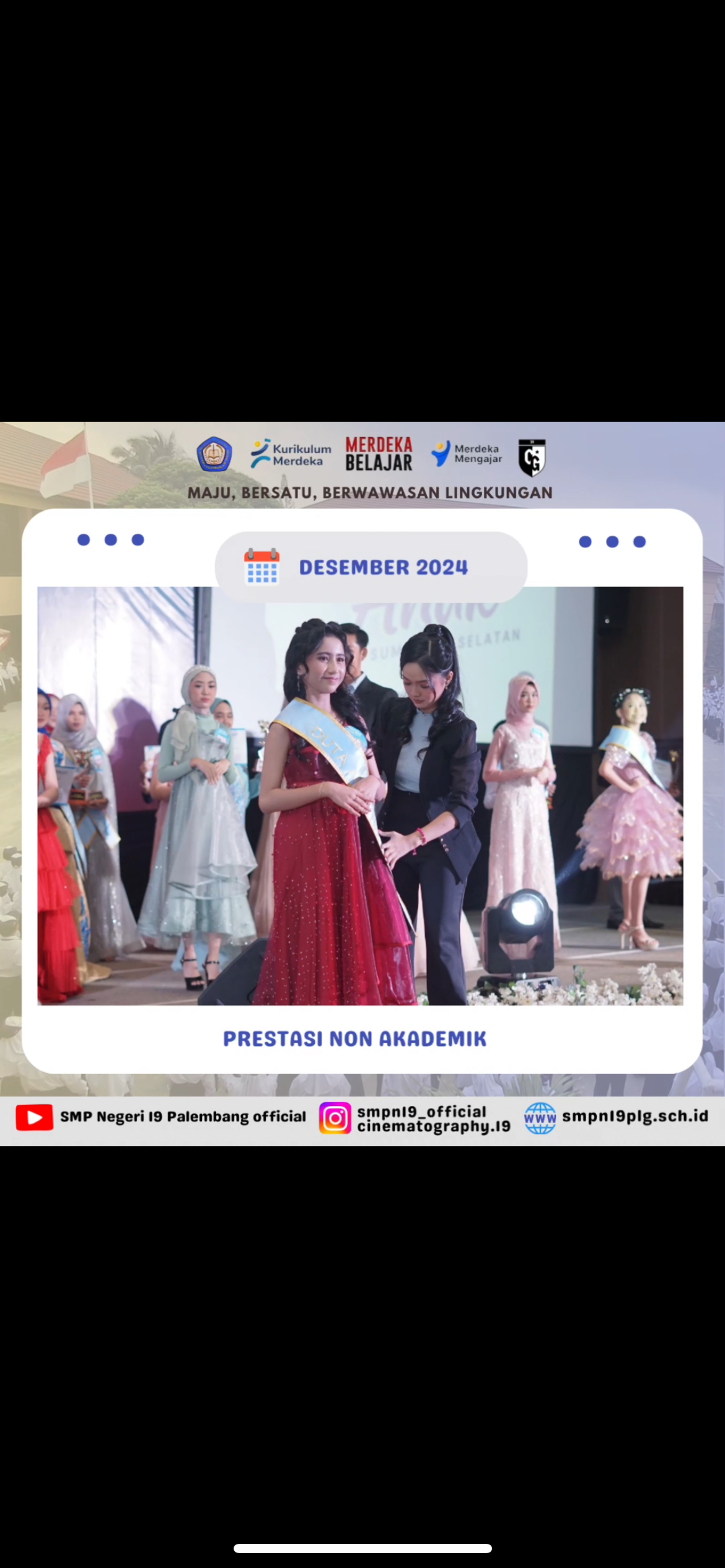 ![]() | PRESTASI NON AKADEMIK Alhamdulillah Selamat kepada Zavira amalya berhasil meraih Intelegensia 3 dalam pemilihan Duta Anak Sumsel 2024 |